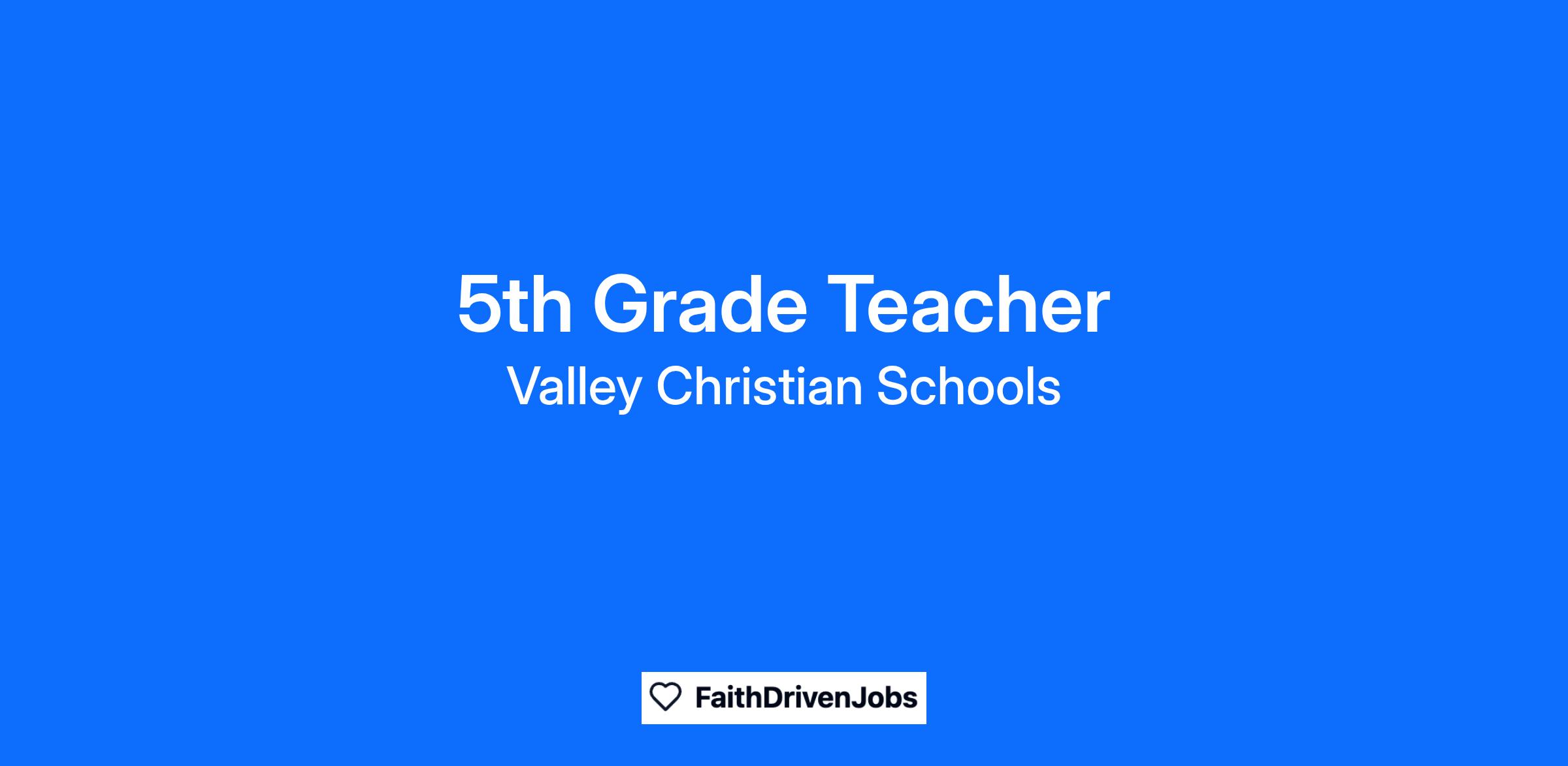 The 5th grade teacher is one who displays a deep knowledge of Scripture and how it applies to the lives of students. This includes an ability to demonstrate a passion for ministering to students. The teacher must be a professing and maturing Christian enthusiastically supporting Valley Christian's Statement of Faith and mission statements.