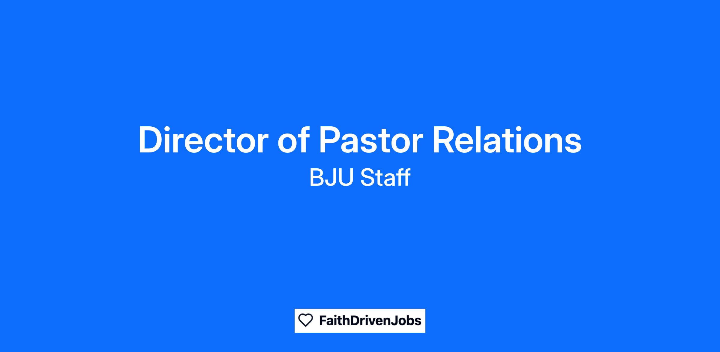 POSITION SUMMARY: The Director of Pastor Relations will be responsible to grow the number and depth of valuable pastor relationships to BJU that will benefit enrollment with a focus on connecting constituents to the academic value at BJU. The Director of Pastor Relations will facilitate the deepening of key new relationships to BJU ensuring their leaders are valued, heard and appreciated. The key measurement of success will be the growth of earned prospects particularly in the state of South Carolina and increased outreach to regional pastors and ministry leaders.