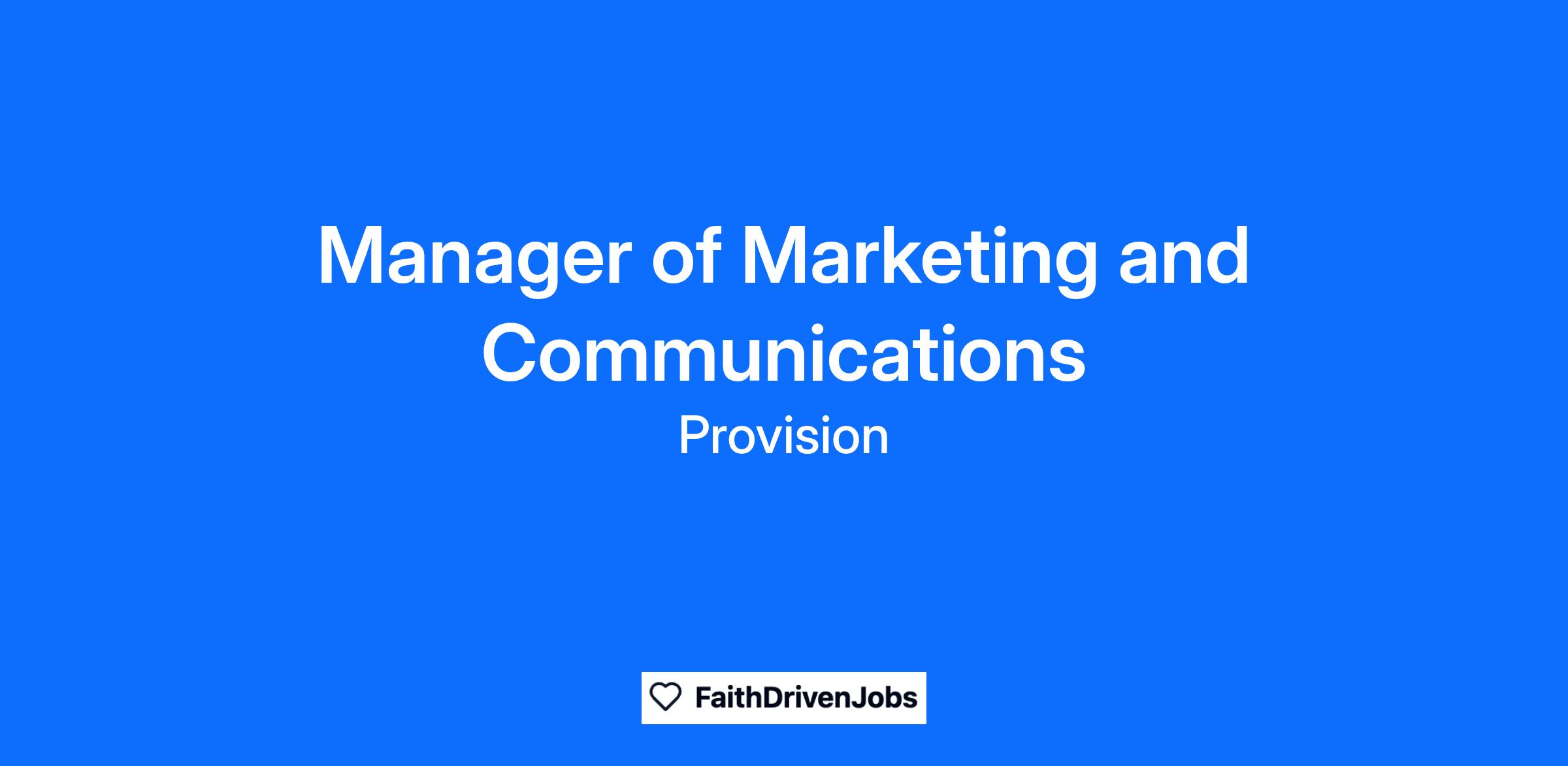The Manager of Marketing and Communications plays a key role in shaping and executing Provision Financial Resources’ marketing and communications strategy in close partnership with the President & CEO.