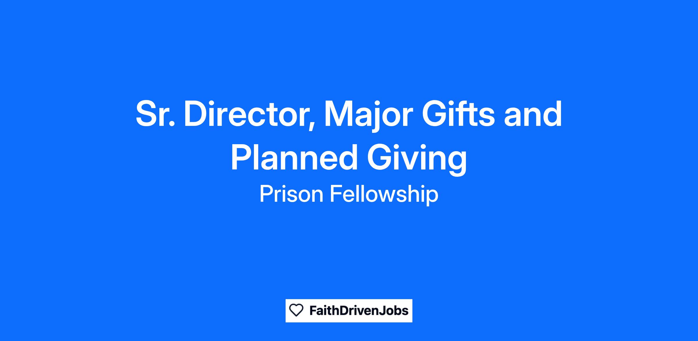A driven and mission-focused Sr. Director, Major Gifts and Planned Giving to contribute to leadership, direction and management of a comprehensive development strategy that strategically grows Prison Fellowship's major gifts and planned giving programs. Working with the VP, Development, you will set specific major gifts and planned giving forecasts and drive those teams to achieve goals with a data-driven, collaborative, and inspiring approach.